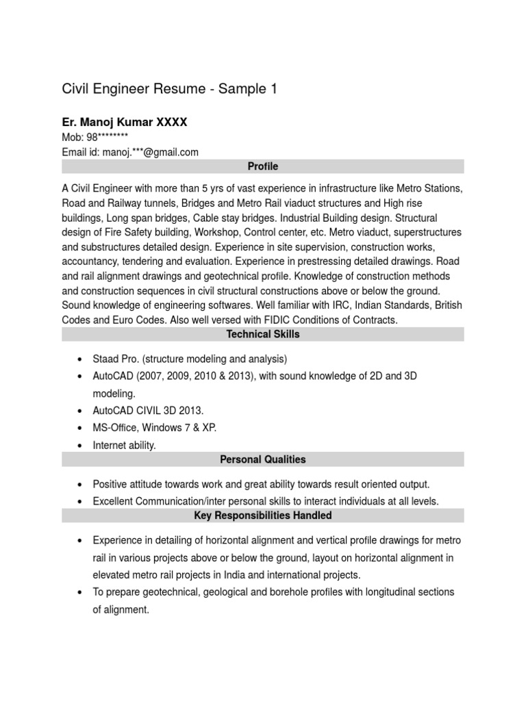 Use this civil engineering resume sample to build a strong resume. Civil engineers oversee construction and/or maintenance of facilities. So here is our best civil engineer resume sample to land more job interviews. Drew civil plans (site plans, grading and stormwater plans, utility plans), diagrams, and profiles the job outlook for civil engineer is growing at 6% per year, which is considered average. Design a sturdy resume that can withstand even the toughest scrutiny. If you need more help, you can always refer to the following resume sample for a position. Download the sample and matching cover letter, then customize them using our. Philip green address line 1 address line 2 t: Below is a rundown of some resume writing tips that will eventually it makes the resume more clear and impactful. Recruiters pay enormously close attention to all the details in your document, so. An effective civil engineering resume can land you to a higher paying job. Whether you are a beginner or seasoned engineer, you need a civil engineering resume with a strong foundation to convince the employer that you have. Civil engineering technician resume sample.